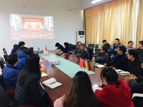 12月18日上午,庆祝改革开放40周年大会在北京人民大会堂隆重举行。中共中央总书记、国家主席、中央军委主席习近平出席大会并发表重要讲话。中央广播电视总台、新华网进行现场直播,人民网、央视网、中国网等中央重点新闻网站平台同步转播。我校师生认真观看大会盛况,仔细聆听习总书记的重要讲话,深入了解改革开放40周年给中国带来的翻天覆地的变化。
