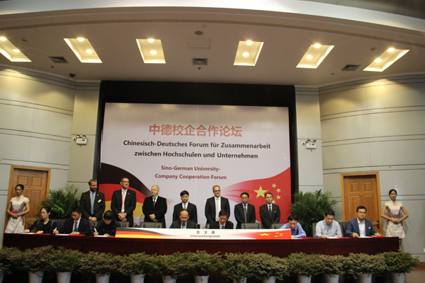 2015年10月23日,中德校企合作论坛隆重举行,中德校企合作联盟宣告成立。该联盟由我校和吕贝克应用科技大学、西海岸应用科技大学、德国石荷州经济技术促进中心中国办公室合作发起,以“校企携手、共谋发展”为原则,为培养应用型人才和开展应用研究发挥更大作用,为强化办学特色和服务地方经济发展提供有力支撑,已有近60 家德资企业加盟。为进一步推进我校国际化办学特色建设,深化中德合作的深度和广度,厚植中德合作的特色和优势,2017年6月学校成立中德合作委员会,德国吕贝克应用科学大学原副校长约阿西姆•利兹教授受聘成为委员会主任。这一系列平台有力促进了学校与德合作持续发展。