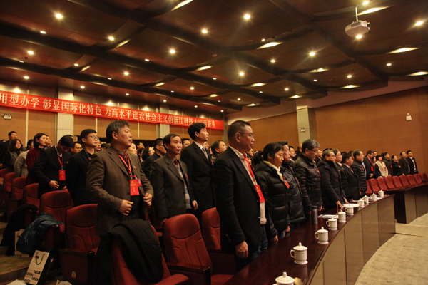 大会指出,围绕学校新的奋斗目标,必须始终坚持党的全面领导,立德树人,必须始终坚持战略引领,特色发展,必须始终坚持内涵发展,改革创新,必须始终坚持抢抓机遇,担当有为,必须始终坚持以人为本,汇智聚力。要不断强化应用型办学,彰显国际化特色,深入实施“多院一体,四轮驱动”的开放强校主战略,全面实施“四大工程”,奋力实现“四大突破”,开启学校高水平建设新征程。要全面落实新时代党的建设总要求,坚持党要管党、从严治党,全面推进党的建设,紧紧围绕中心工作谋划和推进党的政治建设、思想建设、组织建设、干部队伍建设,作风和纪律建设,把制度建设贯穿其中,进一步加强统战、群团和离退休工作,不断提高党的建设质量,为新时代学校各项事业发展提供坚强保证。
