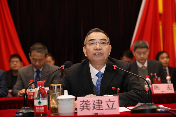 龚建立指出,大会全面总结了学校近五年来的办学成就,深刻剖析了存在的问题和不足,在准确把握新时代学校发展历史方位的基础上,提出了新的奋斗目标,确定了两个发展阶段,明确了今后一个时期的发展主战略和重点任务。“两委”工作报告是集体智慧的结晶,充分反映了全校上下的共同愿望,是指导当前和今后一个时期学校各项工作的纲领性文件。这是一次不忘初心、牢记使命的大会,也是一次凝心聚力、共谋发展的大会。大会进一步振奋了学校广大党员干部、全体师生员工的精神,凝聚了高水平建设社会主义浙江科技大学、实现特色鲜明的现代化应用型大学奋斗目标的磅礴力量,必将对学校新一轮跨越式发展产生重要而深远的影响。