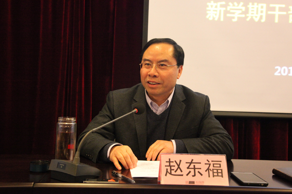 赵东福全面回顾了学校2018年各项工作,并对新一年学校主要工作作部署。他说,2018年学校“大学梦”实施工作取得新突破,内涵建设取得新成效,学校二次创业有了新蓝图。新的一年,围绕第四次党代会绘就的发展蓝图和确定的“多院一体、四轮驱动”开放强校主战略,我们要全力以赴,冲刺大学梦。要筹备开好学科建设工作会议,切实发挥学科建设的龙头作用,带动“多院一体,四轮驱动”开放强校主战略实施,启动“四大工程”,推进“四个一流”建设,实现“四大突破”。同时,结合学科建设工作的开展,做好人事制度改革及新一轮岗位聘任工作;结合学科建设工作的推进,开展产业学院、产业研究院、国际化特色学院“多院一体”建设试点工作。要全面加强党的领导,推进全面从严治党,加强文化建设和资源保障,提升大学治理能力,为学校事业发展提供有力保障。