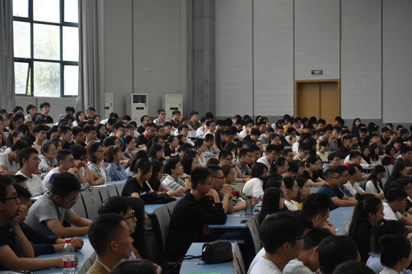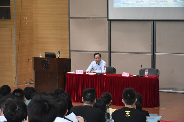 9月2日,校长赵东福为2019级研究生新生讲授开学第一课,副校长万健主持报告会。
