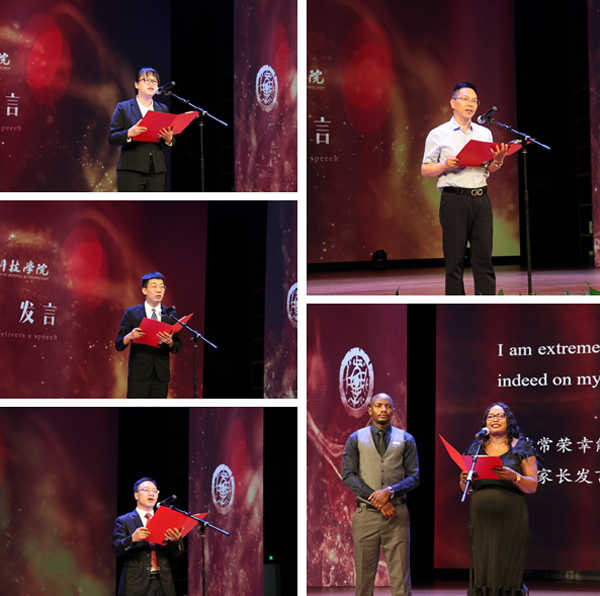 6月18日晚,2019届毕业典礼在水晶剧院举行。校党政领导班子成员出席。典礼由校党委副书记周加敏和史灏煜、李帅两名同学以中英双语一同主持。