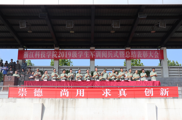 9月7日上午,2019级学生军训阅兵式暨总结表彰大会在安吉校区田径场举行。校党政领导和承担本次军训任务的东部战区75210部队负责人出席。学校相关职能部门、各学院负责人、军训工作领导小组成员参加大会。
