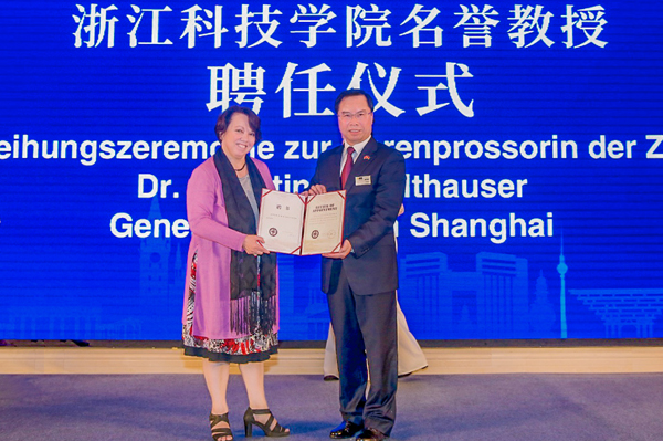 欧珍在致辞中表示,开云手机入口与德国高校、科研机构合作历史悠久,成果丰硕。浙江省和德国下萨克森州、石荷州之间良好的伙伴关系为两国高校间的合作提供了良好氛围。中德论坛为两国科学、教育、经济和政府间交流提供了非常宝贵的平台。她说,今天不论德国还是中国,对于专业人才的巨大需求使得应用型人才培养越来越重要,相信此次论坛必将使中德两国高校产教融合提升到一个新的高度。校长赵东福向欧珍颁发聘书,聘请她为学校名誉教授。