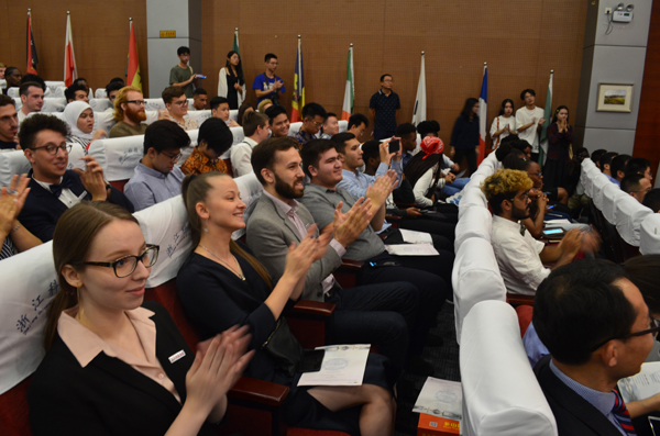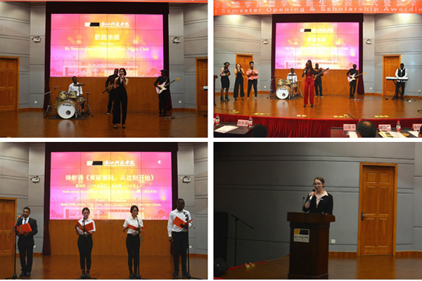 老生代表、津巴布韦籍米莱用流利的中文讲述了自己的学习经历,表达了对学校的感谢,并向新同学提出了许多有益的建议。新生代表、德国籍黎爱玲在发言中表达了对崭新大学生活的期待和向往。