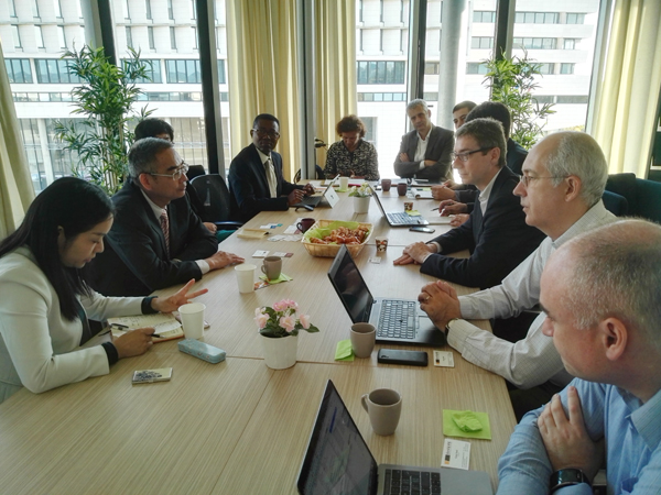 在法国赛尔齐•蓬多瓦兹大学,代表团与该校校长Germinet,土木工程、大数据双学位法方项目负责人以及大巴黎省外办人员进行会谈,肯定两校现有的合作成果,就落实新项目大数据中法合作项目的后续工作进行商讨。两校就开展土木工程专业和大数据专业硕士层次合作办学、建立中法联合实验室、加强教师交流和科研合作的可能性展开深入讨论。龚建立一行看望了我校中法项目在法交流学生以及中法项目毕业生。(国际处 建工学院 童芸芸)