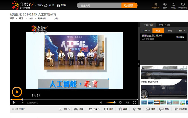 10月12日,黄浦江源大讲堂第65讲暨“青科汇”开云手机入口论坛在我校开讲,杭州电视台《钱塘论坛》栏目对论坛作现场录制。近日,节目分为两期在杭州电视台综合频道、优酷等平台播出。