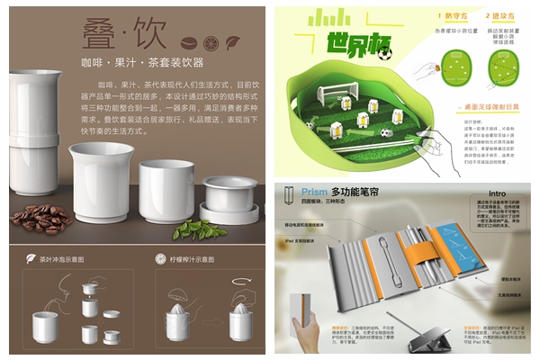 从征稿到初赛、复赛历经半年多,共有57所省内高校送选的697件作品参赛。我校工业设计专业和产品设计专业学生在裘航、魏杭帅、张晖、张叶知四位老师的组队带领下,选送15件作品参赛并成功入围复赛。经过两天模型展示、现场演讲、以及紧张激烈的答辩环节,工业设计151姜常青、工业设计161吴乐乐、产品设计161曹艺《叠饮》,产品设计151徐玉芹、工业设计161杨眉、产品设计161严青《植趣》,工业设计161应吉晨、工业设计161陈安儿、产品设计152周帅师《小小世界杯》,产品设计142陈芳婷、产品设计152周帅师、产品设计152周璐《闻香同享》获本科创意组一等奖;工业设计161李俊逸、工业设计161王琦、工业设计151周对菲《Prism 多功能笔帘》获本科命题组一等奖;工业设计161李克俭、工业设计151张蕾、产品设计161宋杰《电路积木》,工业设计161周志杰、产品设计152胡涵雪、产品设计151何琳《声波首饰》,工业设计151刘浩、产品设计152陆晗、徐建然《哮喘手环》,产品设计141赵万杭、工业设计161高国峻、工业设计151陈娇《视力障碍群体餐具设计》获本科创意组二等奖;产品设计162徐陈、工业设计151张蕾、产品设计162郑宇洲《收纳画家》获本科命题组二等奖;产品设计151邵佳丽、产品设计151王增欢、工业设计161石恩男《动物说》,产品设计151孙东东、工业设计161周迅羽、产品设计162高嫔清《包贝》,产品设计152杨振凯、产品设计152吴陶蒙、产品设计161钱人瑜《汉墨》,工业设计151钱凌波、产品设计151周亦辂、产品设计151陈亮靓《小小糖画家》获本科创意组三等奖;产品设计161蔚天舸、产品设计151武晗、产品设计161王闲静《像素时光》获本科命题组三等奖。