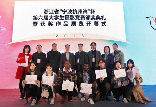 本次大赛由浙江省大学生科技竞赛委员会主办、浙江传媒学院与我校、宁波杭州湾新区旅游局联合承办。本次大赛的专业组、非专业组、留学生组、宁波杭州湾专项组、省外高校组共收到84所高校的1935组参赛作品;纪录片组共收到参赛作品93部;手机摄影组共收到参赛作品2168幅。经初评、复赛答辩、结果公示、仲裁委员会评定等环节,我校摄影161李嘉冲《黑砂》获专业组纪实类一等奖(指导老师竺萃);数字媒体技术151Ndashimye Bertrand《永不停歇的夜Never Resting Night》获留学生组一等奖(指导老师宋蔚);摄影162吴泽桦《鸟瞰杭州湾之湾区模式》获宁波杭州湾专项组二等奖(指导老师陈婧赟);摄影162王雅琪《海》获专业组商业类二等奖(指导老师翁长庆);摄影161卢希宁《中国姑娘》获专业组商业类三等奖(指导老师何昊);摄影162吴泽桦、摄影171曾洁妮获专业组艺术类三等奖(指导老师陈婧赟);数字媒体技术171Robert Kalule获留学生组三等奖(指导老师柳杨)。