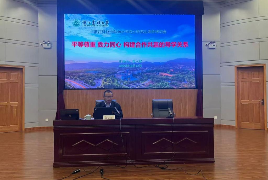 10月23日,学校举行2025年硕导培训会,浙江农林大学光机电工程学院副院长姚立健、浙江工商大学研究生院副院长蔡美强应邀作报告。研究生院相关负责人、学校2025年新增硕导、优秀硕导代表和有意申报硕导资格的教师参加会议。